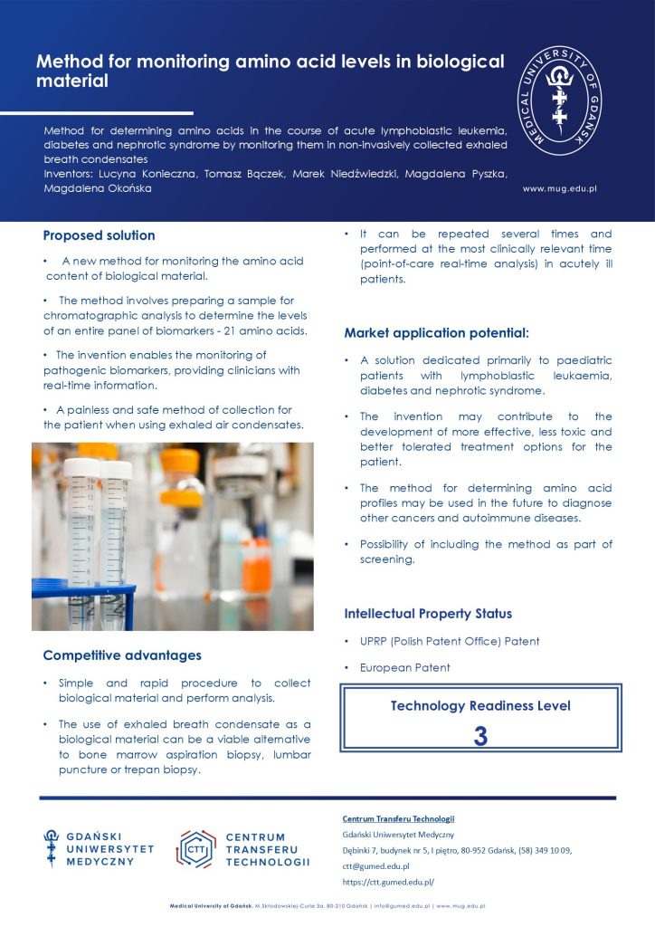 Method for determining amino acid in the course of acute lymphoblastic leukemia diabetes and nephrotic syndrome by monitoring them in non-invasively collected exhaled breath condensates